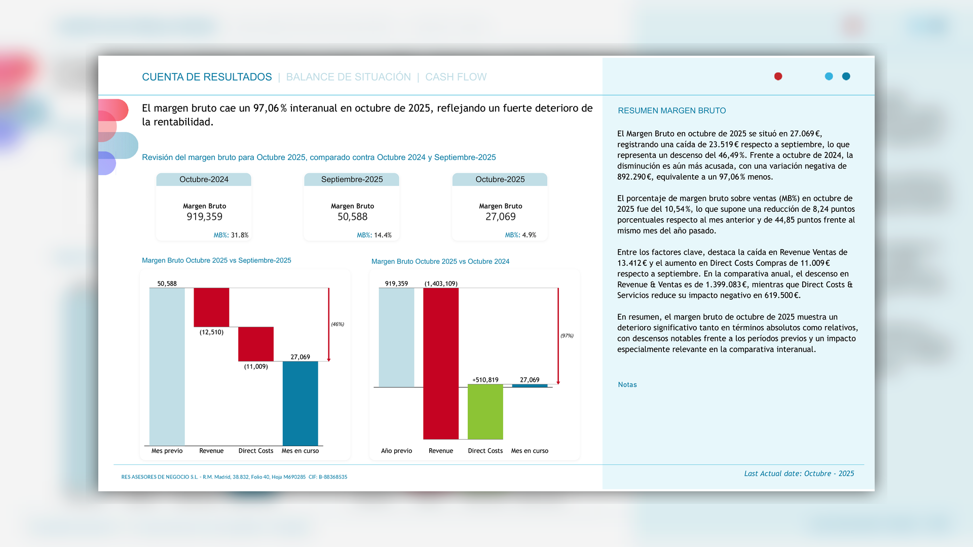 Descubre qué bien ha ido tu empresa comparándote con el mes anterior y el mismo mes del año anterior.