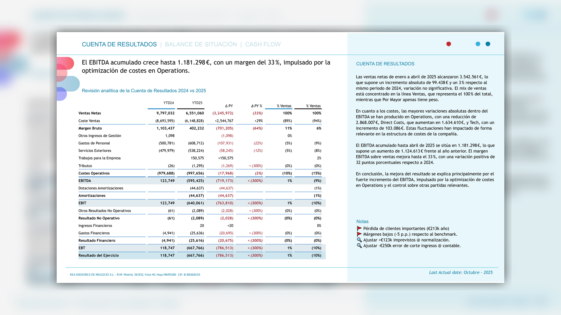 Últimos 3 años, detalle exhaustivo de la contabilidad, EEFF, tesorería y mucho más.